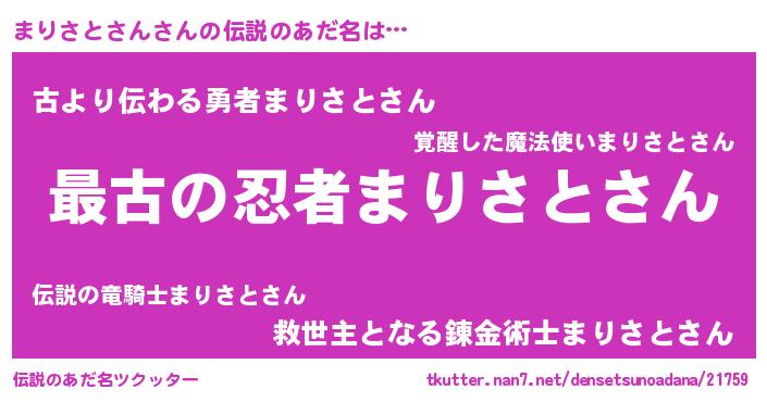 | ファンタジー風あだ名 | 『エターナルマリサトサンー』 |