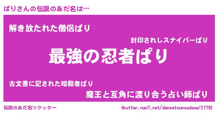 | ヒーロー風カッコイイあだ名 | 『ウルトラぱりマン』『サイバー戦士パリ』 |