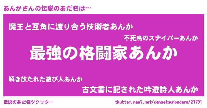 | 意味不明あだ名 | 『あんかフォーエバー』『自称あんか』 |