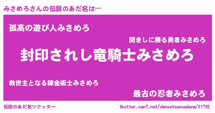 | 女子向けラノベタイトル風あだ名 | 『悪役みさめろに転生したようですが、知った事ではありません』 |
