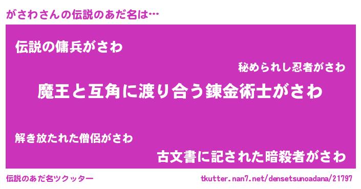 | 男性向けラノベタイトル風あだ名 | 『ノーゲーム・ノーガサワ』 |