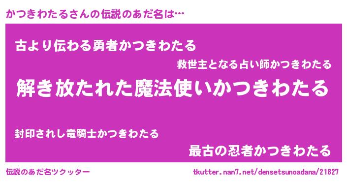 | 胡散臭い通販商品みたいなあだ名 | 『世界中を虜にした100年もののヴィンテージワイン…その名も「かつきわたる」』 |