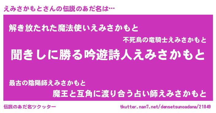 男性向けラノベタイトル風あだ名 | 『えみさかもとという概念が存在しない退屈な世界 』 |