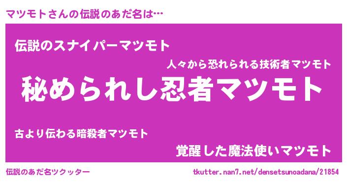 | ファンタジー風あだ名 | 『エターナルマツモトー』『マツフェル』 |