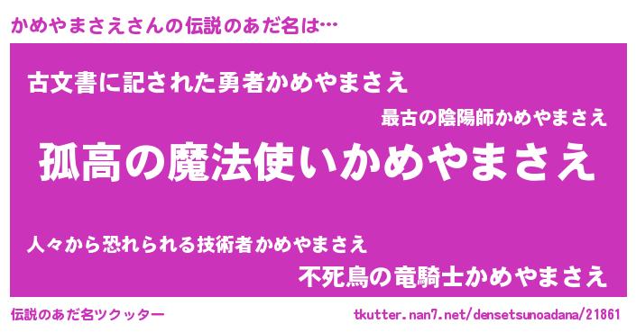 | 男性向けラノベタイトル風あだ名 | 『ダンジョンにかめやまさえを求めるのは間違っているだろうか』 |