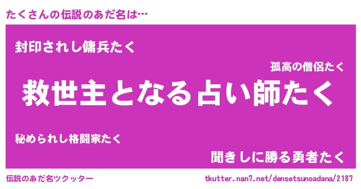 | ヒーロー風カッコイイあだ名 | 『慈愛の使者たく』『スーパータク』 |