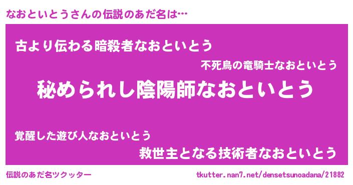 | ファンタジー風あだ名 | 『エターナルナオトイトウー』 |