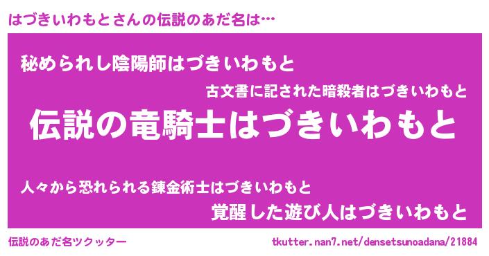 | 女子向けラノベタイトル風あだ名 | 『(仮)はづきいわもとのやんごとなき事情』 |