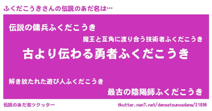| 胡散臭い通販商品みたいなあだ名 | 『来世でも幸せになれる水素水…その名も「ふくだこうき」』 |