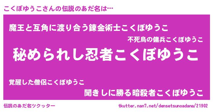 | ヒーロー風カッコイイあだ名 | 『ウルトラこくぼゆうこマン』 |