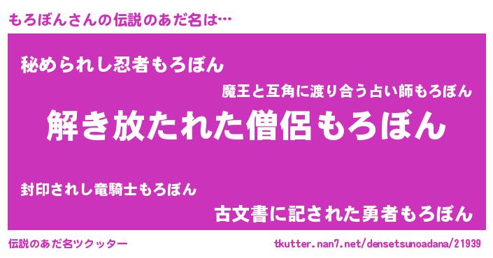 | 意味不明あだ名 | 『住所不定無職もろぼん(43歳)』 |