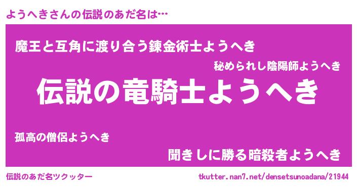 | 男性向けラノベタイトル風あだ名 | 『ようへきの憂鬱』『ヨウヘキスレイヤー』 |