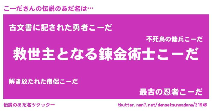 | ヒーロー風カッコイイあだ名 | 『天空の使者こーだ』『ネオコーダ』 |