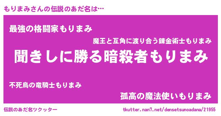 | 意味不明あだ名 | 『永久保存もりまみ』 |