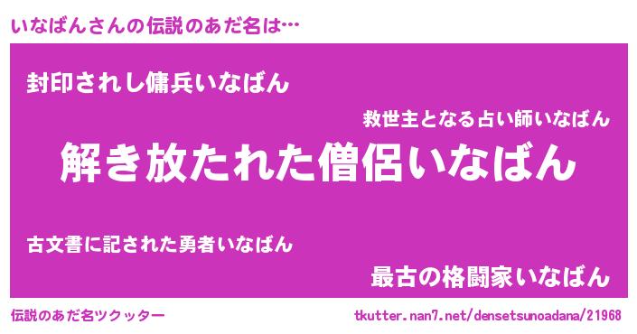 | ヒーロー風カッコイイあだ名 | 『魔戒騎士イナ』『超時空戦士イナバン』 |