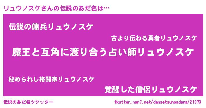 | ヒーロー風カッコイイあだ名 | 『慈愛の使者リュウノスケ』 |