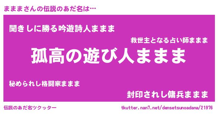 | 胡散臭い通販商品みたいなあだ名 | 『信頼と実績のペンダント…その名も「ままま」』 |