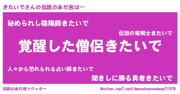 | 男性向けラノベタイトル風あだ名 | 『きたいでの嫁は女の子じゃないと思った?』 |