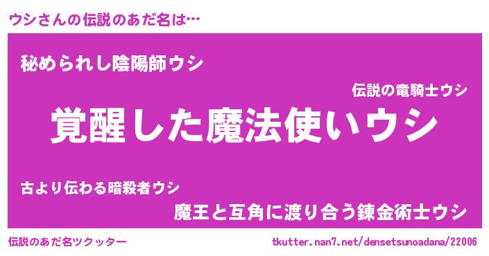 | ヒーロー風カッコイイあだ名 | 『天弓騎士ウシ』『ウルトラウシマン』 |