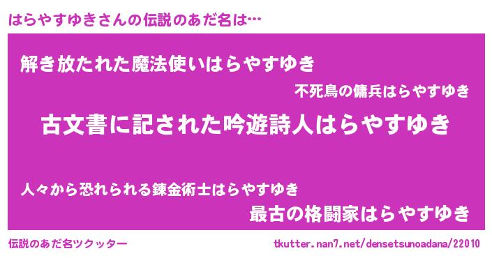 | 意味不明あだ名 | 『永久保存はらやすゆき』 |