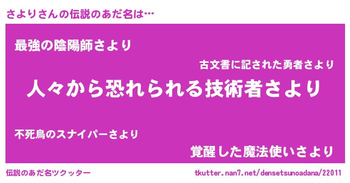 | 肩書あだ名 | 『さより助教授』『さより少尉』 |