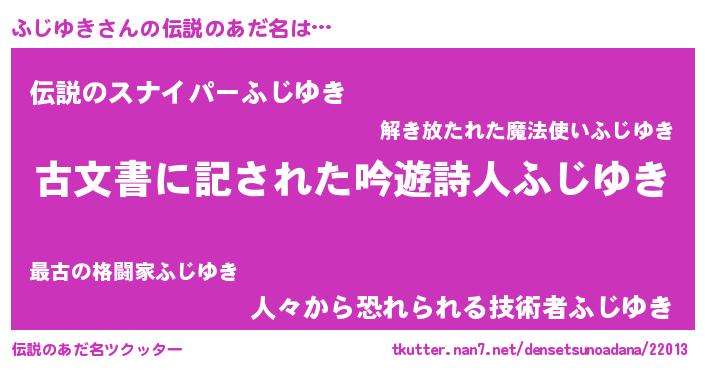 | 意味不明あだ名 | 『自称ふじゆき』『永久保存ふじゆき』 |