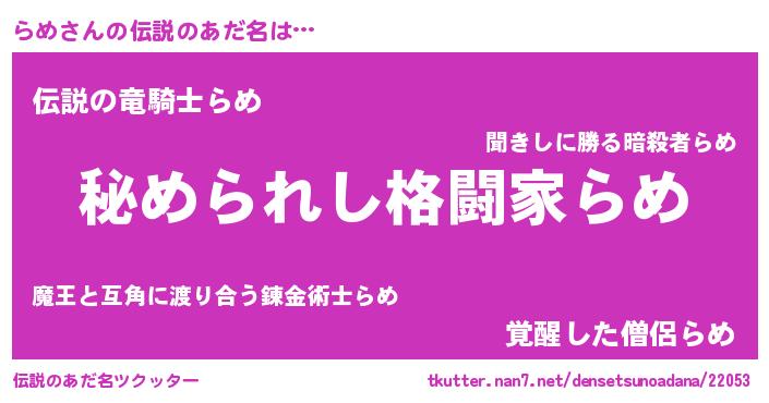 | 意味不明あだ名 | 『らめフォーエバー』『自称らめ』 |
