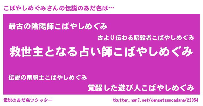 | 男性向けラノベタイトル風あだ名 | 『こばやしめぐみに滅ぼされるだけの簡単なお仕事です』 |