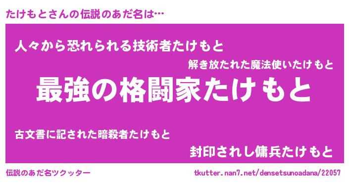 | 意味不明あだ名 | 『たけもとフォーエバー』『自称たけもと』 |