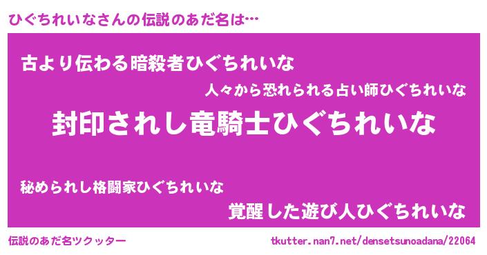 | 胡散臭い通販商品みたいなあだ名 | 『億万長者になれるブレスレット…その名も「ひぐちれいな」』 |