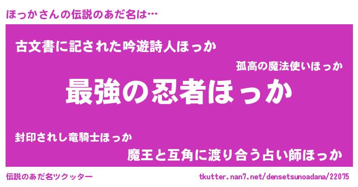 | 意味不明あだ名 | 『住所不定無職ほっか(65歳)』『自称ほっか』 |
