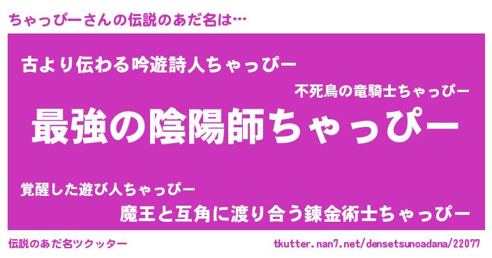 | ファンタジー風あだ名 | 『エターナルチャッピーー』『ゼチャトゥ』 |