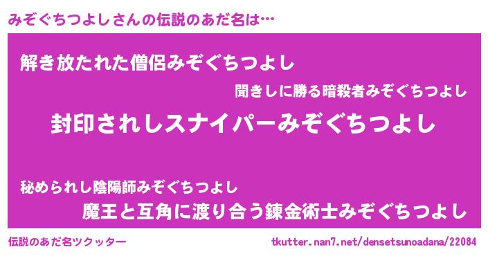 | ヒーロー風カッコイイあだ名 | 『スーパーミゾグチツヨシ』 |