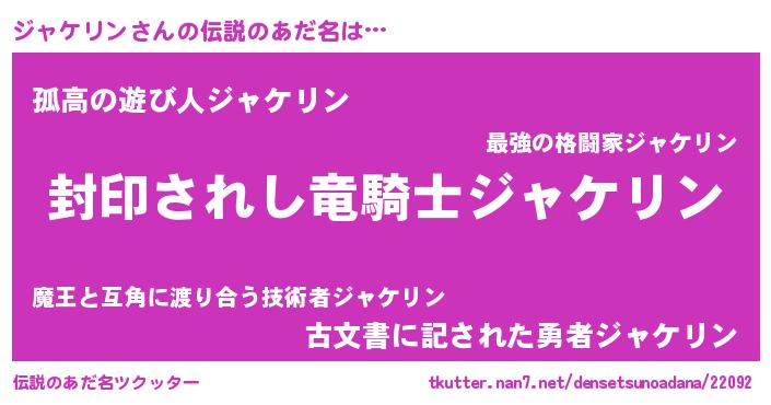 | 男性向けラノベタイトル風あだ名 | 『ジャケリンアートオンライン』 |