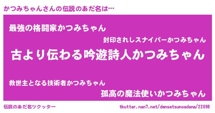 | 意味不明あだ名 | 『永久保存かつみちゃん』 |