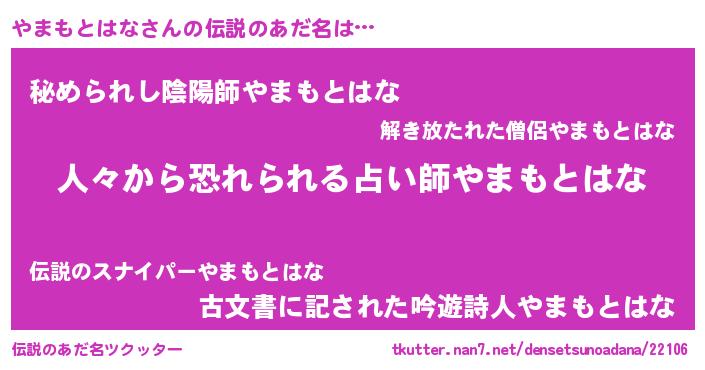 | 肩書あだ名 | 『やまもとはな艦長』『やまもとはな閣下』 |