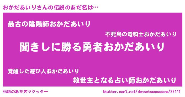 ヘコむあだ名 | 『おかだあいり(遠い目)』『なまこ酢』 |