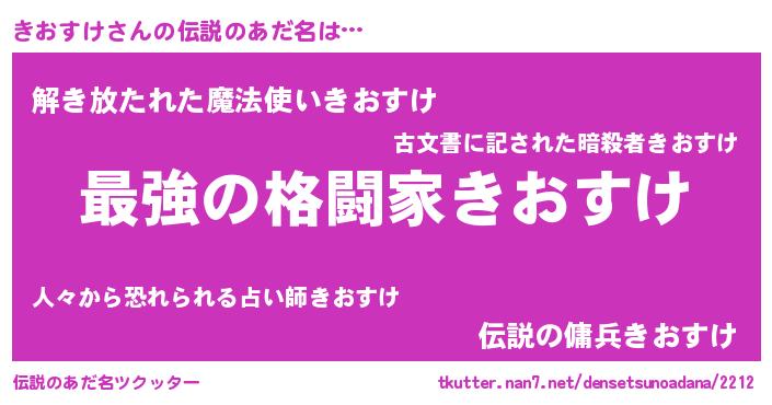 | ヘコむあだ名 | 『酢こんぶ』『きおお』『きおもー』 |