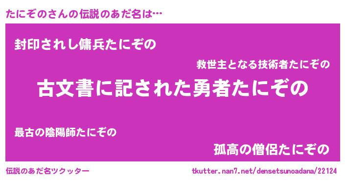 | ヘコむあだ名 | 『たにぞの(震え声)』『たににゅー』 |