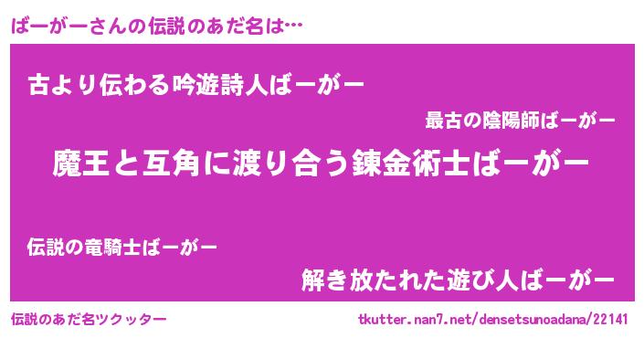 | ヒーロー風カッコイイあだ名 | 『友情の使者ばーがー』『ネオバーガー』 |