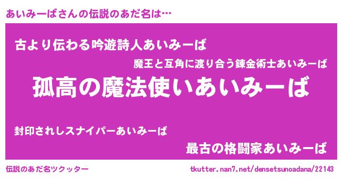 | 意味不明あだ名 | 『とにかく怪しいあいみーば』 |