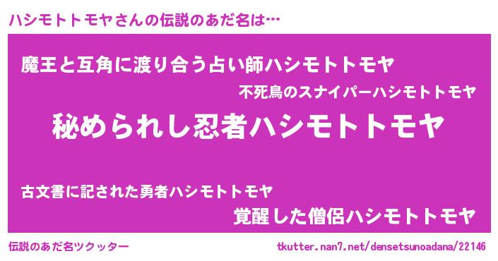 | 男性向けラノベタイトル風あだ名 | 『はたらくハシモトトモヤさま!』 |