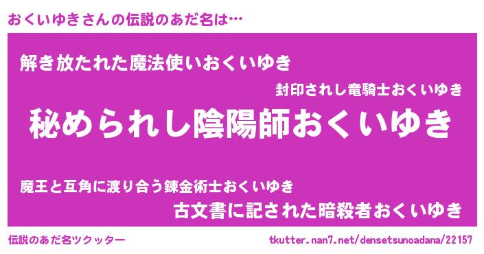 | ファンタジー風あだ名 | 『エターナルオクイユキー』『オクフェル』 |