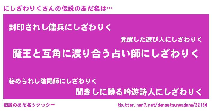 | 男性向けラノベタイトル風あだ名 | 『転生したらにしざわりくだった件』 |