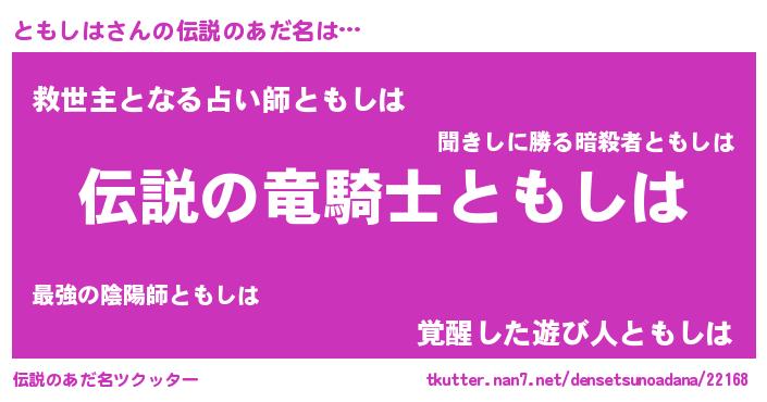 | ヒーロー風カッコイイあだ名 | 『スーパートモシハ』『仮面トモダー』 |