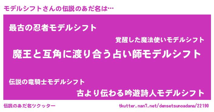 | ヒーロー風カッコイイあだ名 | 『愛の使者モデルシフト』『仮面モデダー』 |