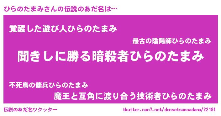 | 意味不明あだ名 | 『永久保存ひらのたまみ』 |