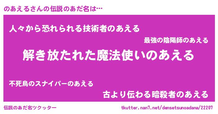 | 胡散臭い通販商品みたいなあだ名 | 『伝統あるサプリメント…その名も「のあえる」』 |