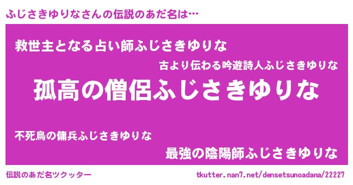 | 女子向けラノベタイトル風あだ名 | 『シンデレラふじさきゆりな家の靴箱館』 |