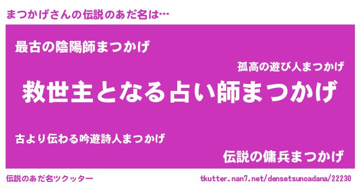 | ヒーロー風カッコイイあだ名 | 『慈愛の使者まつかげ』『仮面マツダー』 |
